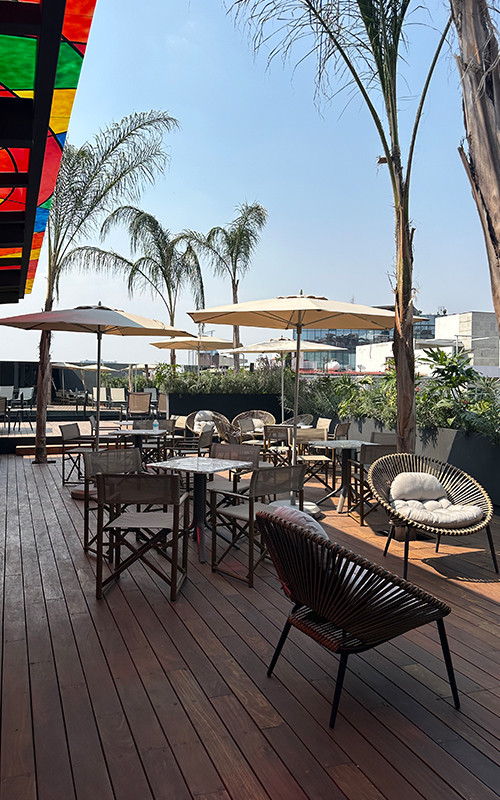 Nuestro Rooftop combina vistas únicas de la ciudad con un ambiente moderno y sofisticado. Desde días soleados junto a la alberca disfrutando de cocteles refrescantes hasta noches iluminadas con el skyline de la CDMX, cada momento está pensado para inspirar tus sentidos. Un espacio diseñado para relajarte, convivir y disfrutar experiencias memorables.
